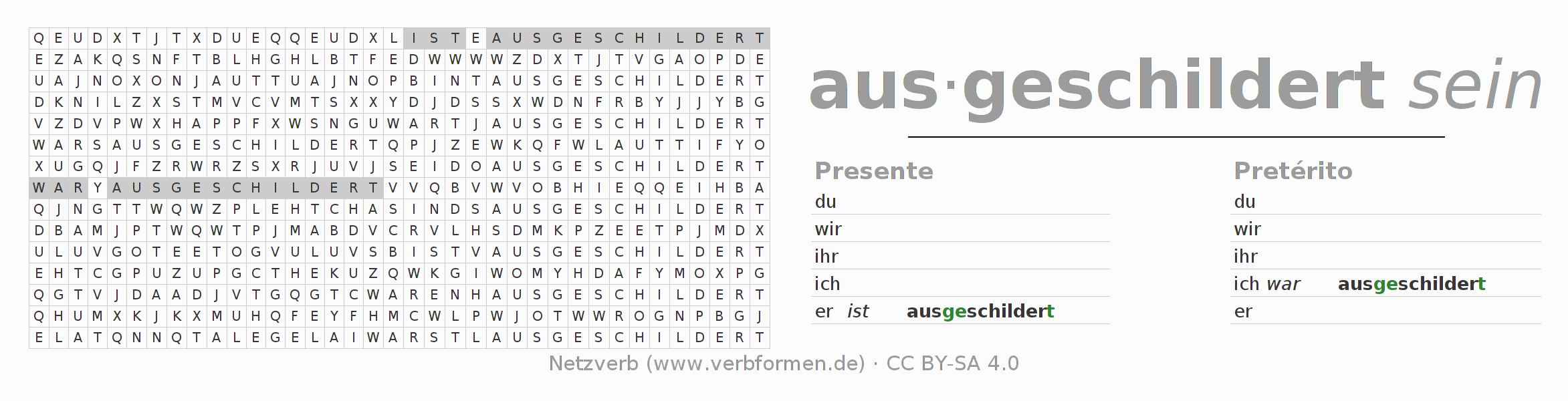 Com o caça-palavras aprende-se de uma forma desafiadora a conjugação do verbo ausschildern.