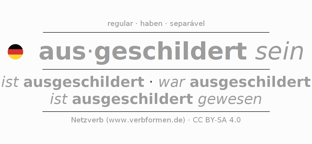 A Tabela de verbo resume todas as formas verbais do verbo ausschildern em uma só tabela.