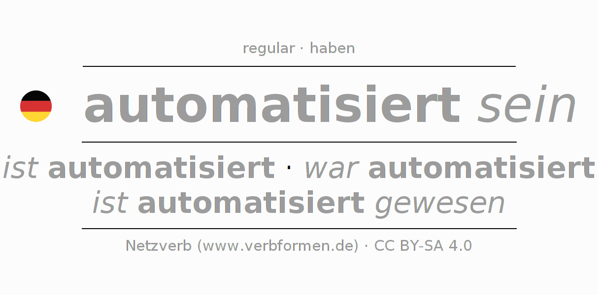 Tabela de conjugação para todas as formas verbais do verbo automatisieren
