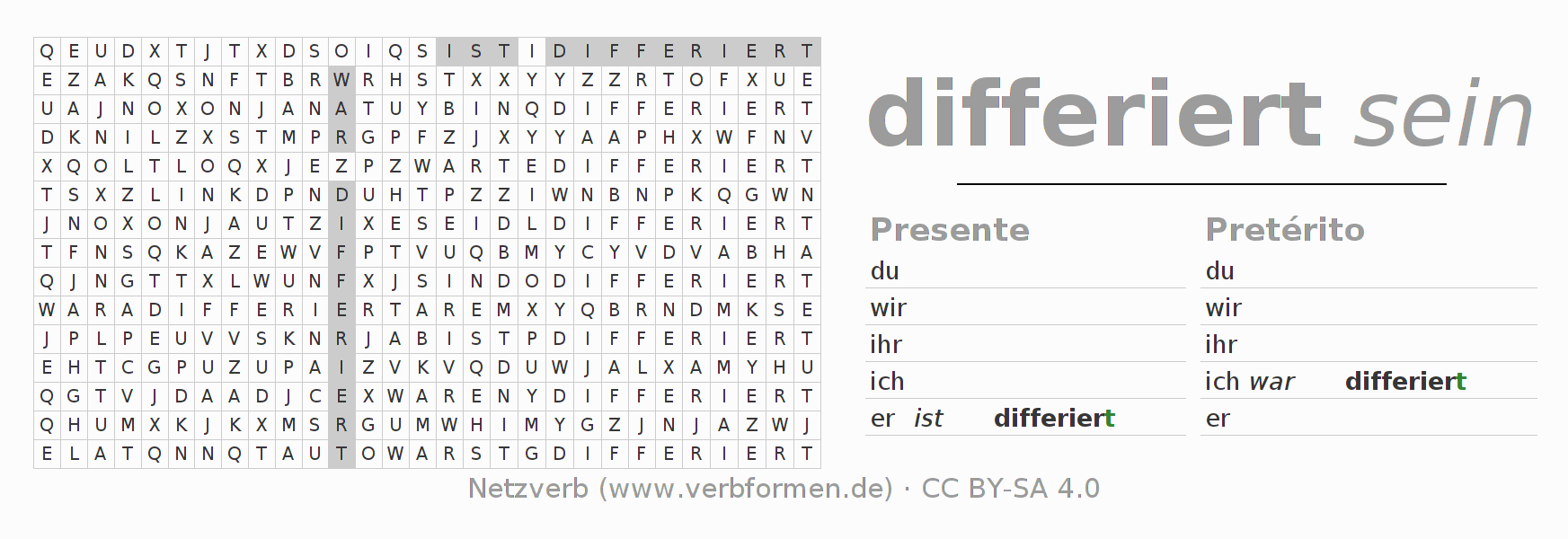 Com o caça-palavras aprende-se de uma forma desafiadora a conjugação do verbo differieren.