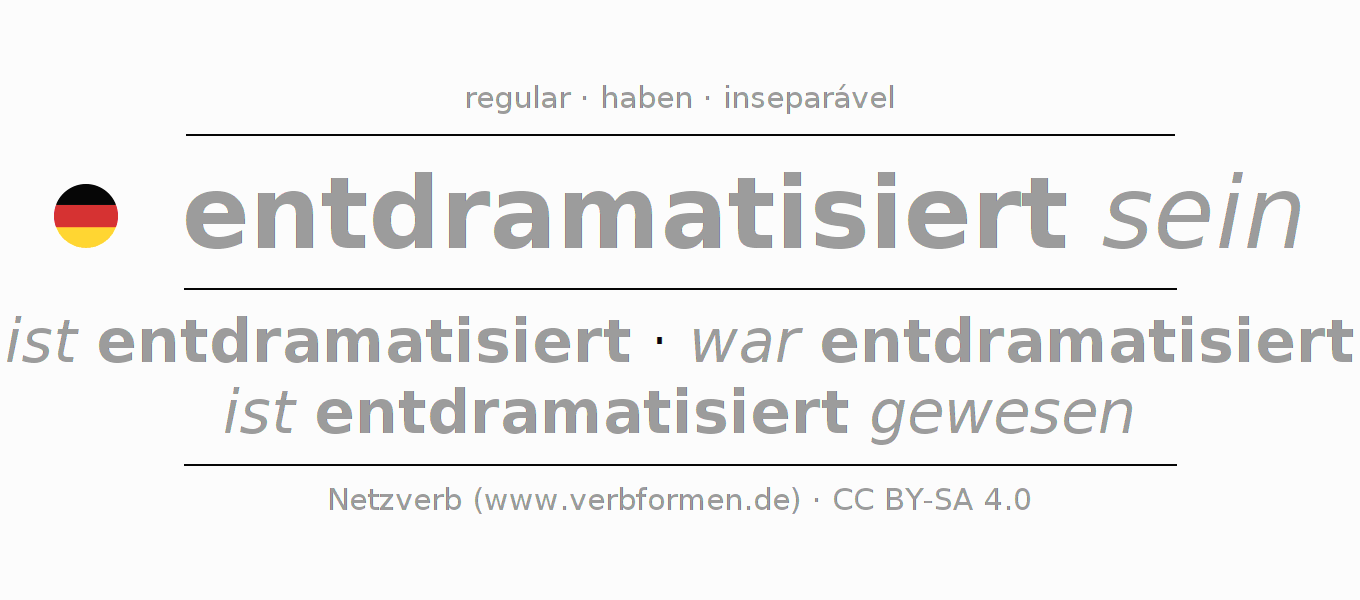 A Tabela de verbo resume todas as formas verbais do verbo entdramatisieren em uma só tabela.