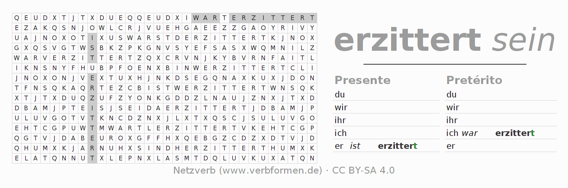 Caça-palavras para todas as formas do verbo erzittern