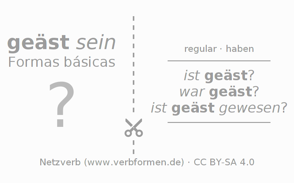 Flashcards, cartões de aprendizagem para todas as formas do verbo äsen