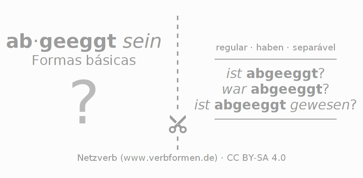 A Tabela de verbo resume todas as formas verbais do verbo abeggen em uma só tabela.