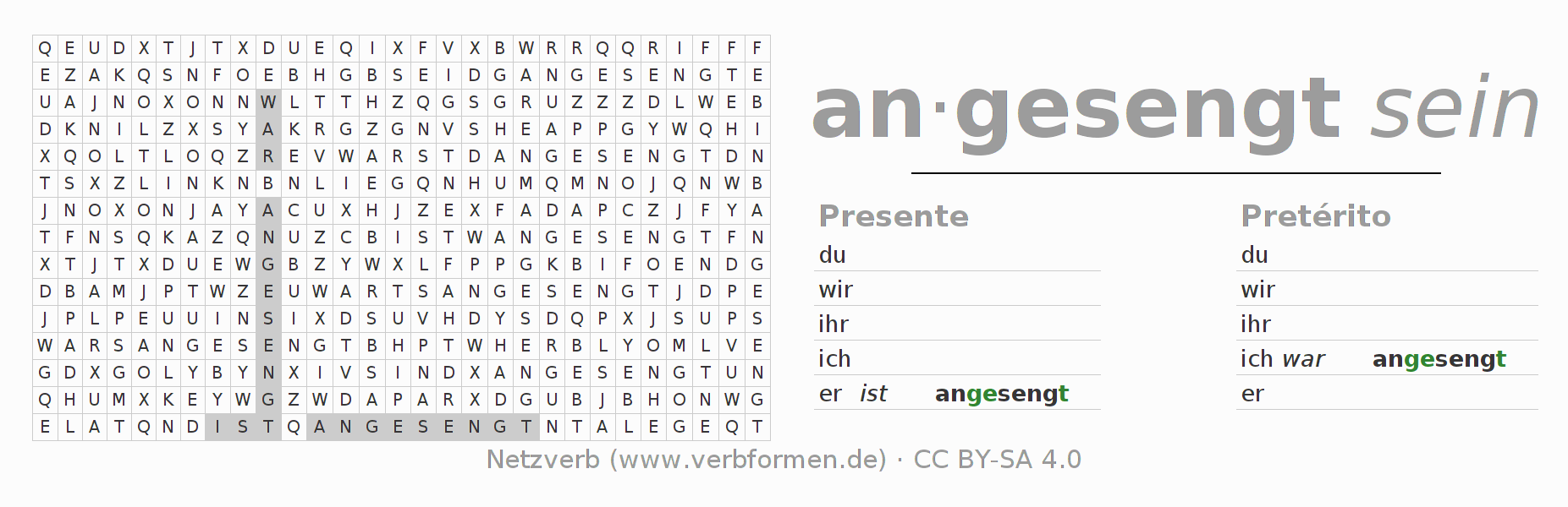 Caça-palavras para todas as formas do verbo ansengen