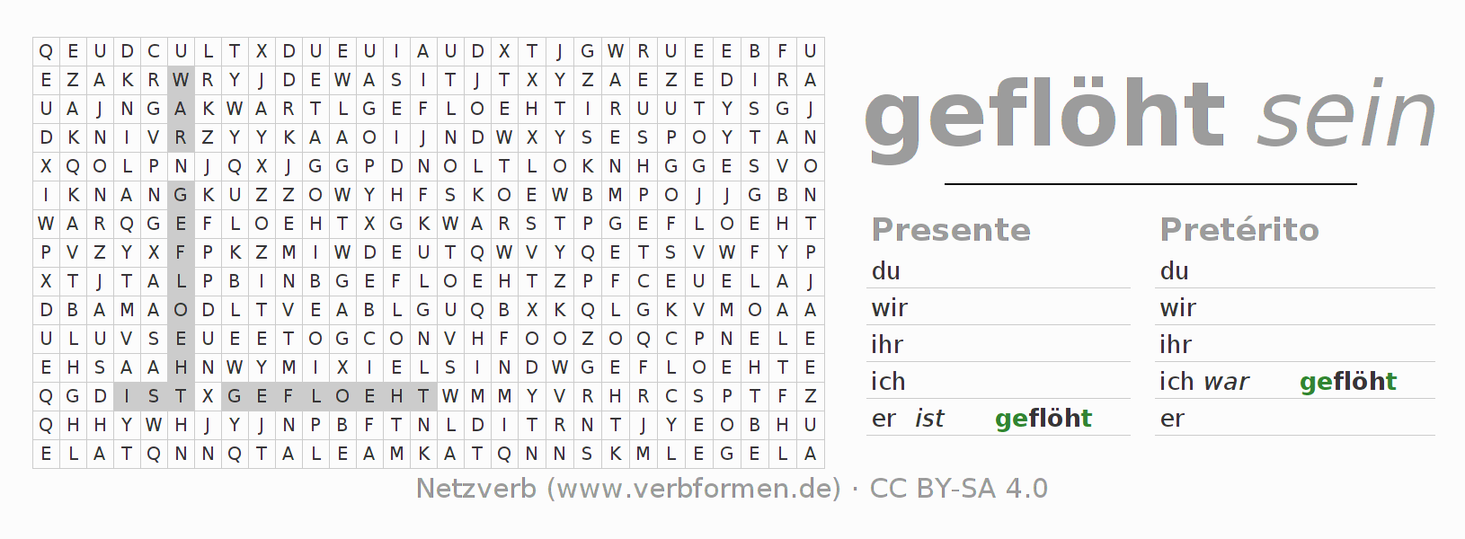 Caça-palavras para todas as formas do verbo flöhen