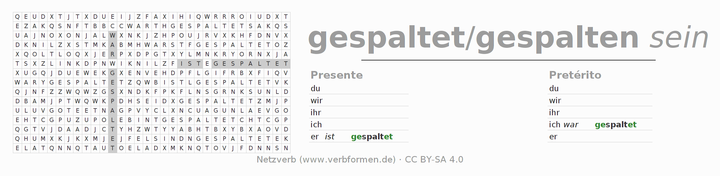 A Tabela de verbo resume todas as formas verbais do verbo spalten em uma só tabela.