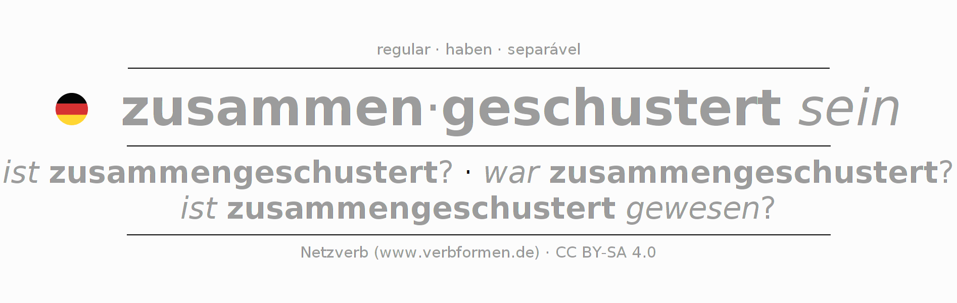 A Tabela de verbo resume todas as formas verbais do verbo zusammenschustern em uma só tabela.