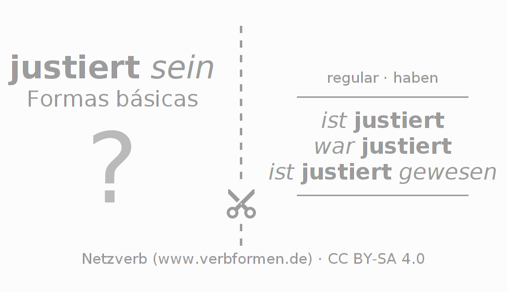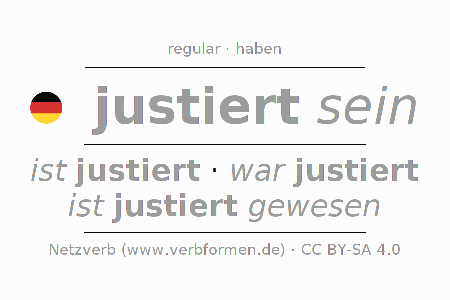A Tabela de verbo resume todas as formas verbais do verbo justieren em uma só tabela.