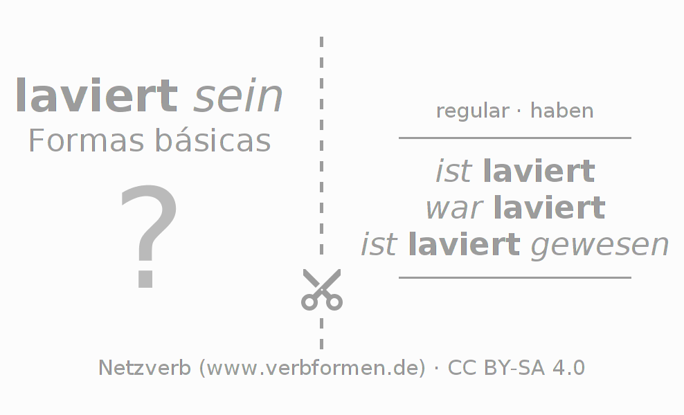 A Tabela de verbo resume todas as formas verbais do verbo lavieren em uma só tabela.