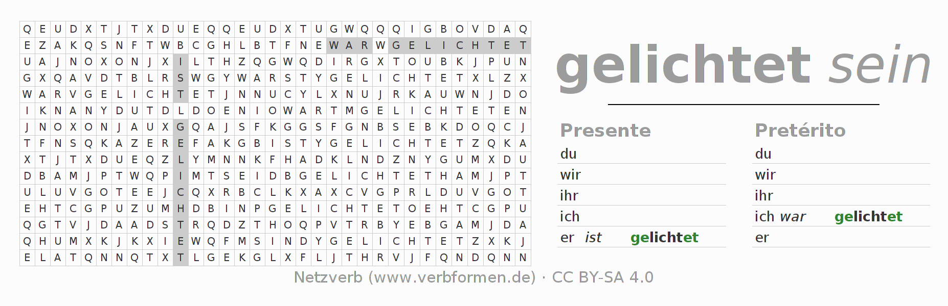 Com o caça-palavras aprende-se de uma forma desafiadora a conjugação do verbo lichten.