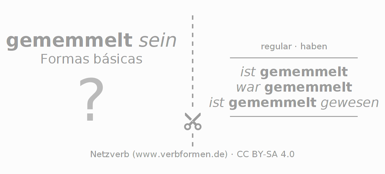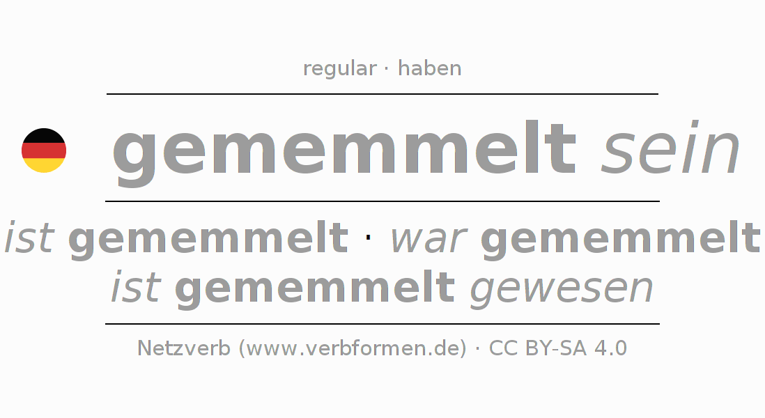 A Tabela de verbo resume todas as formas verbais do verbo memmeln em uma só tabela.