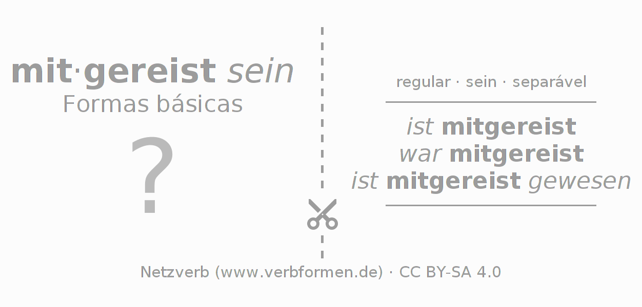 A Tabela de verbo resume todas as formas verbais do verbo mitreisen em uma só tabela.