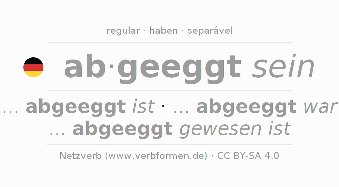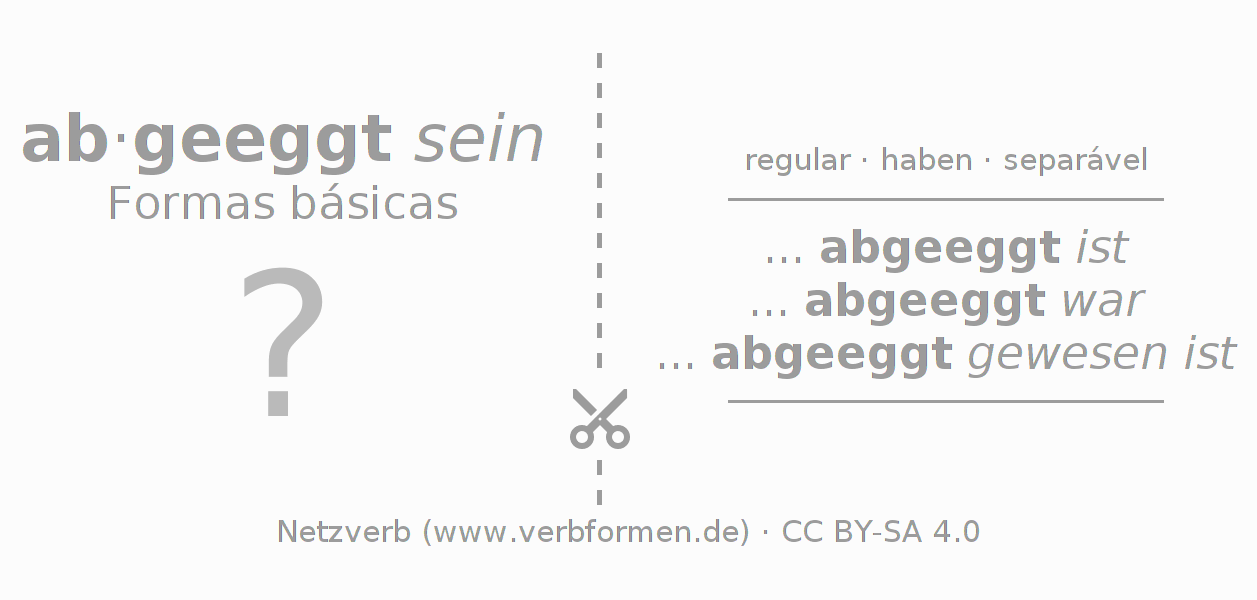 A Tabela de verbo resume todas as formas verbais do verbo abeggen em uma só tabela.