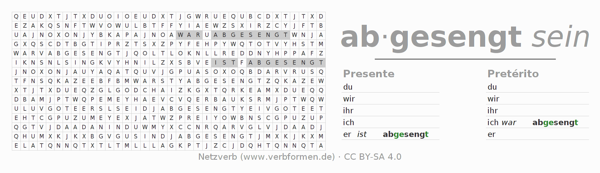 A Tabela de verbo resume todas as formas verbais do verbo absengen em uma só tabela.