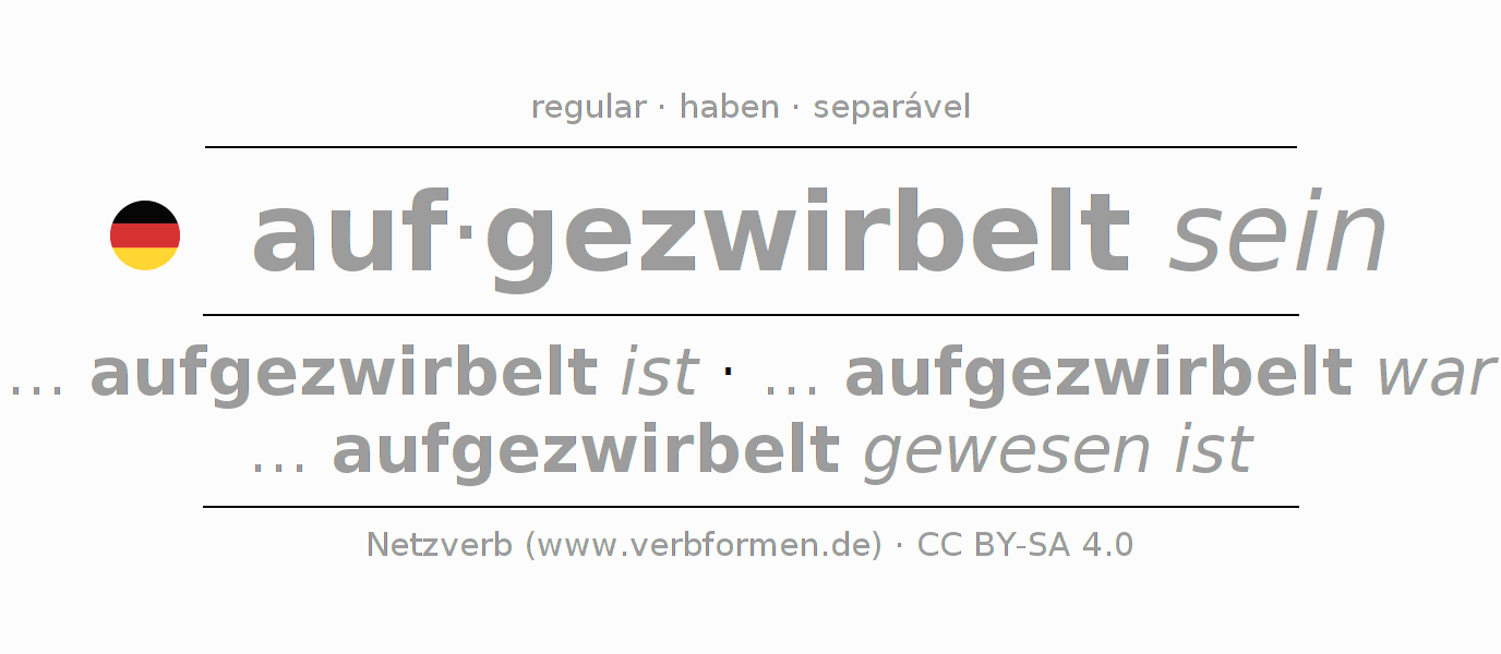 A Tabela de verbo resume todas as formas verbais do verbo aufzwirbeln em uma só tabela.