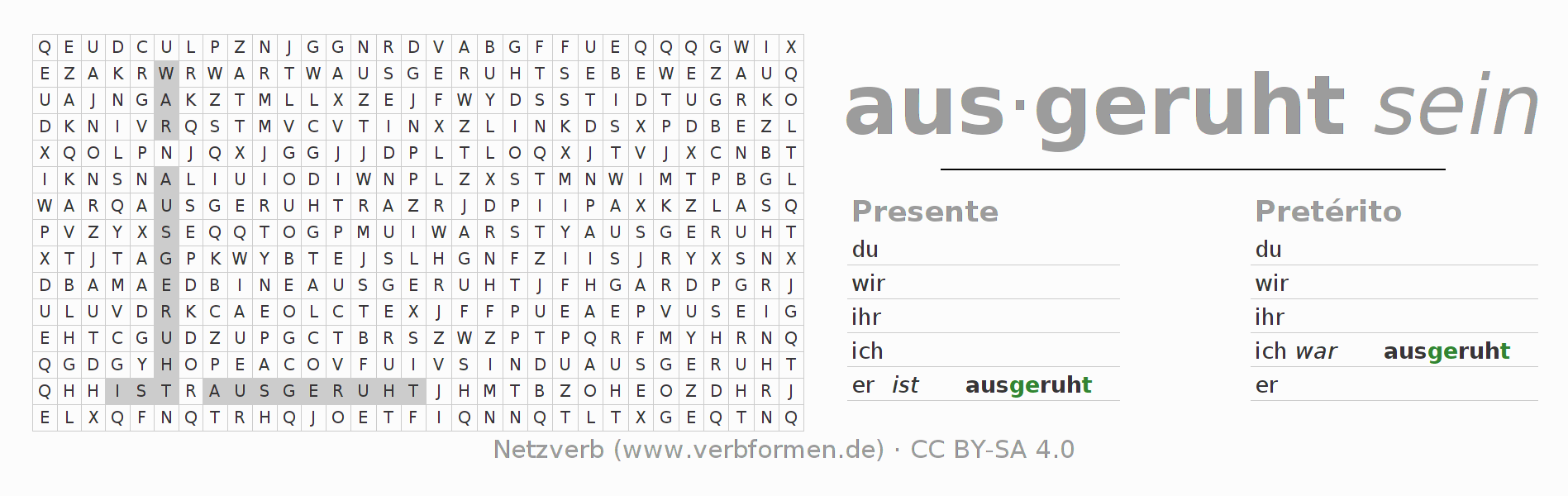 Com o caça-palavras aprende-se de uma forma desafiadora a conjugação do verbo ausruhen.
