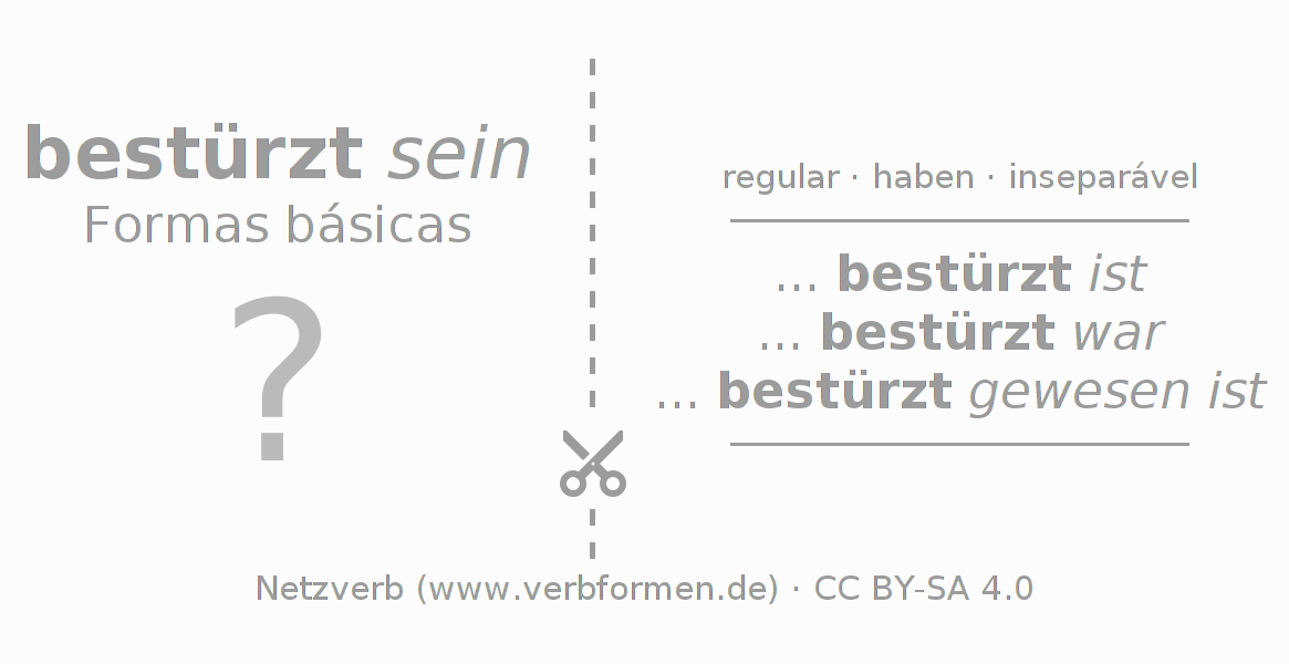 A Tabela de verbo resume todas as formas verbais do verbo bestürzen em uma só tabela.