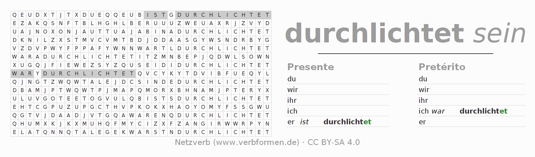 Caça-palavras para todas as formas do verbo durchlichten