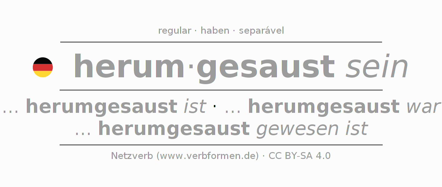 A Tabela de verbo resume todas as formas verbais do verbo herumsausen em uma só tabela.
