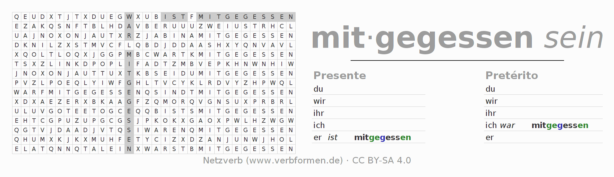 Com o caça-palavras aprende-se de uma forma desafiadora a conjugação do verbo mitessen.
