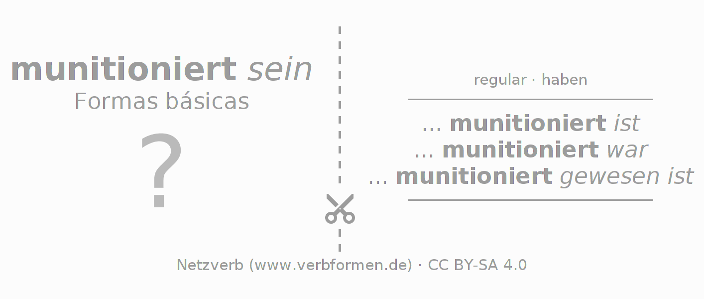 A Tabela de verbo resume todas as formas verbais do verbo munitionieren em uma só tabela.