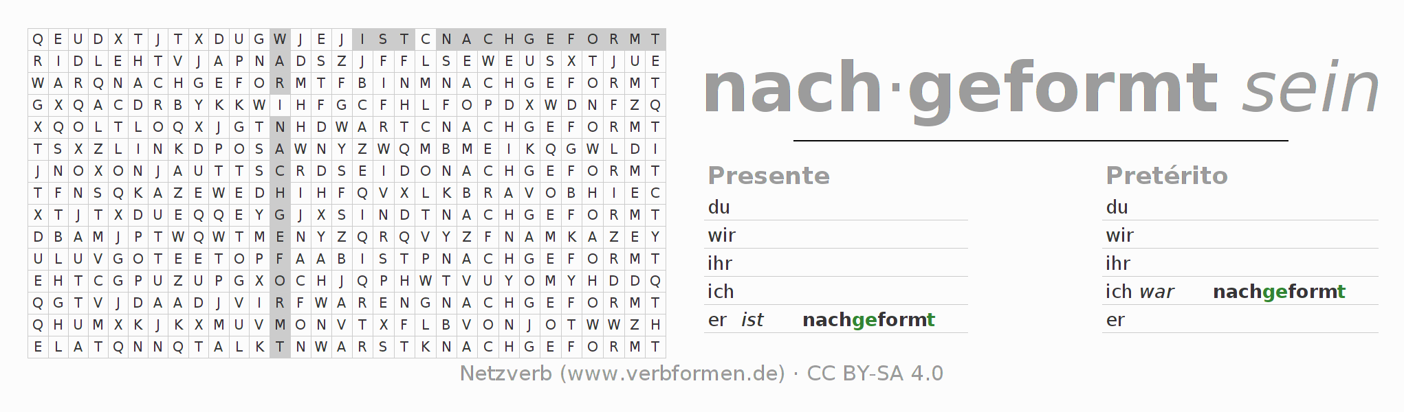 Com o caça-palavras aprende-se de uma forma desafiadora a conjugação do verbo nachformen.