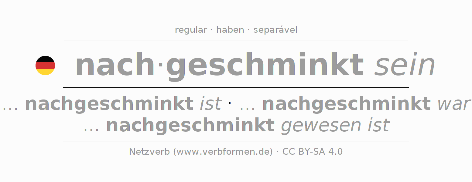 A Tabela de verbo resume todas as formas verbais do verbo nachschminken em uma só tabela.
