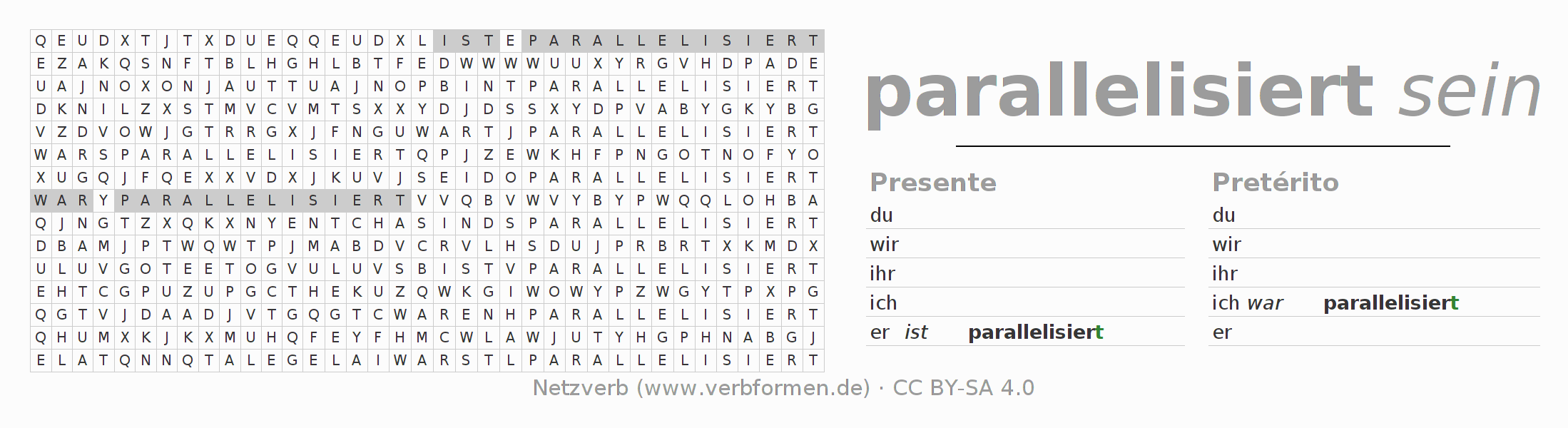 Com o caça-palavras aprende-se de uma forma desafiadora a conjugação do verbo parallelisieren.