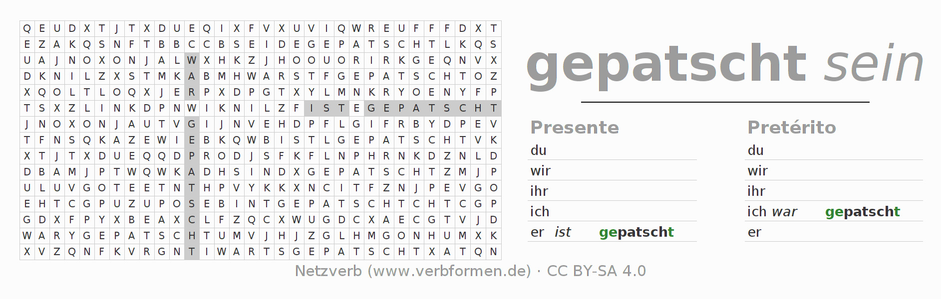 Caça-palavras para todas as formas do verbo patschen (hat)