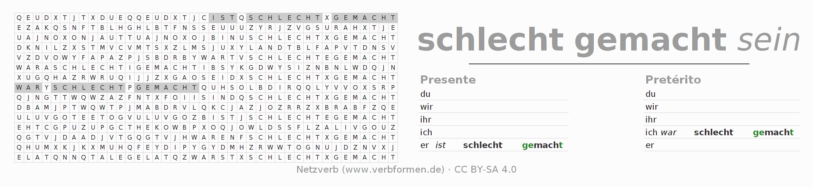 Caça-palavras para todas as formas do verbo schlechtmachen