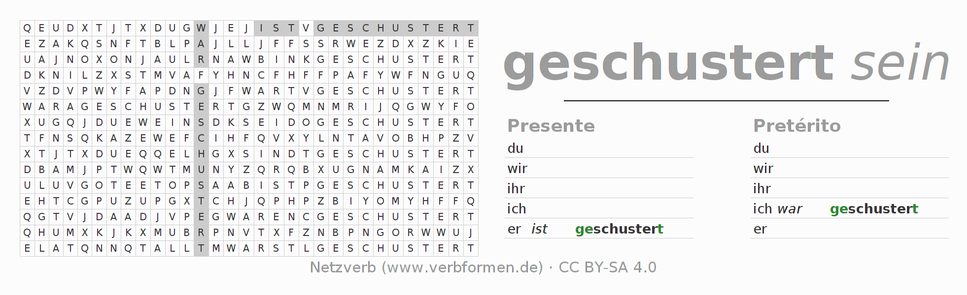 Caça-palavras para todas as formas do verbo schustern