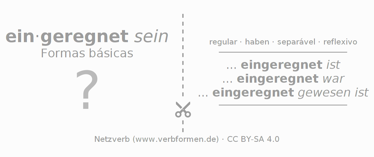 A Tabela de verbo resume todas as formas verbais do verbo sich einregnen em uma só tabela.