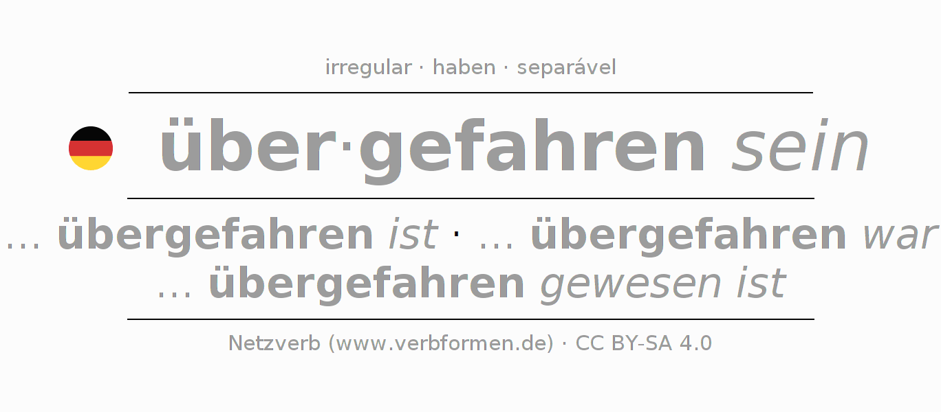 A Tabela de verbo resume todas as formas verbais do verbo überfahren em uma só tabela.