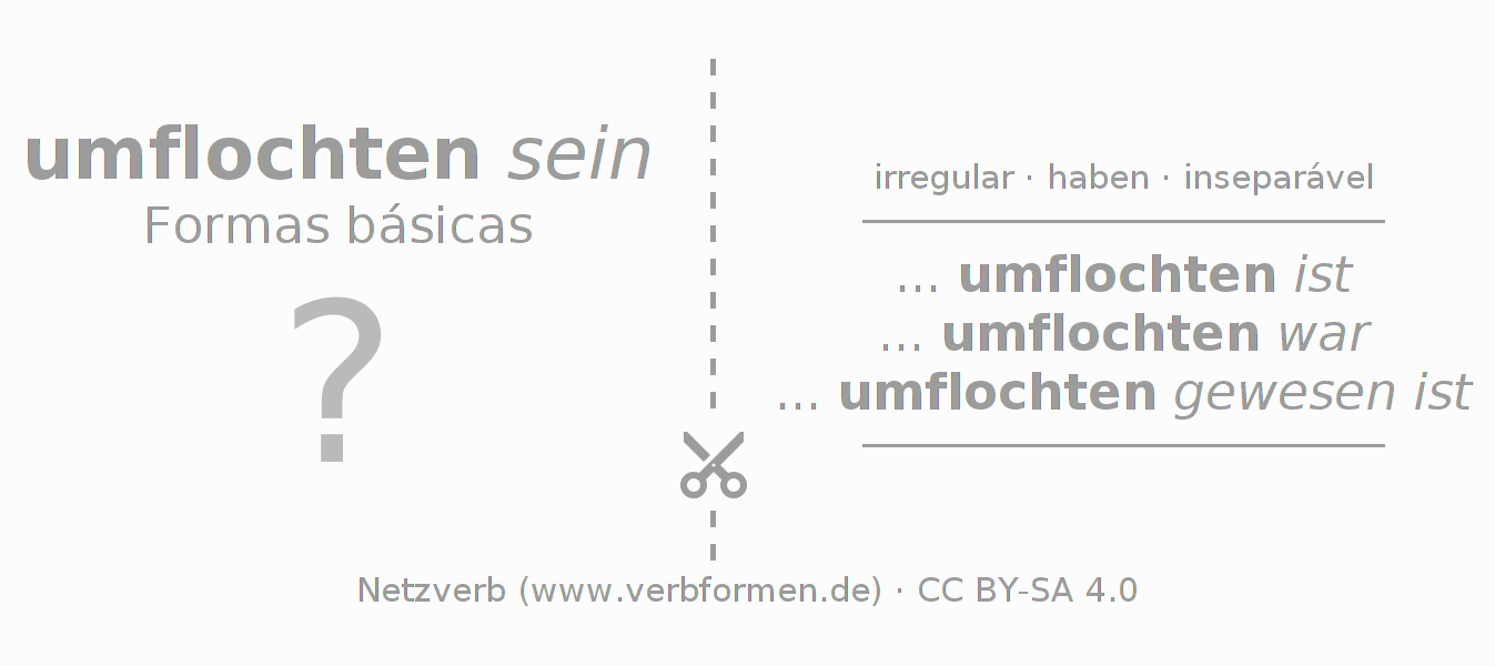 A Tabela de verbo resume todas as formas verbais do verbo umflechten em uma só tabela.