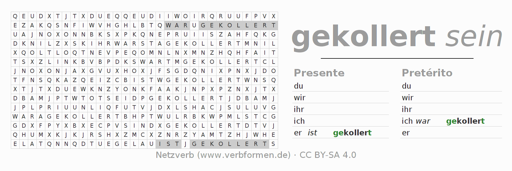 Com o caça-palavras aprende-se de uma forma desafiadora a conjugação do verbo sich kollern.