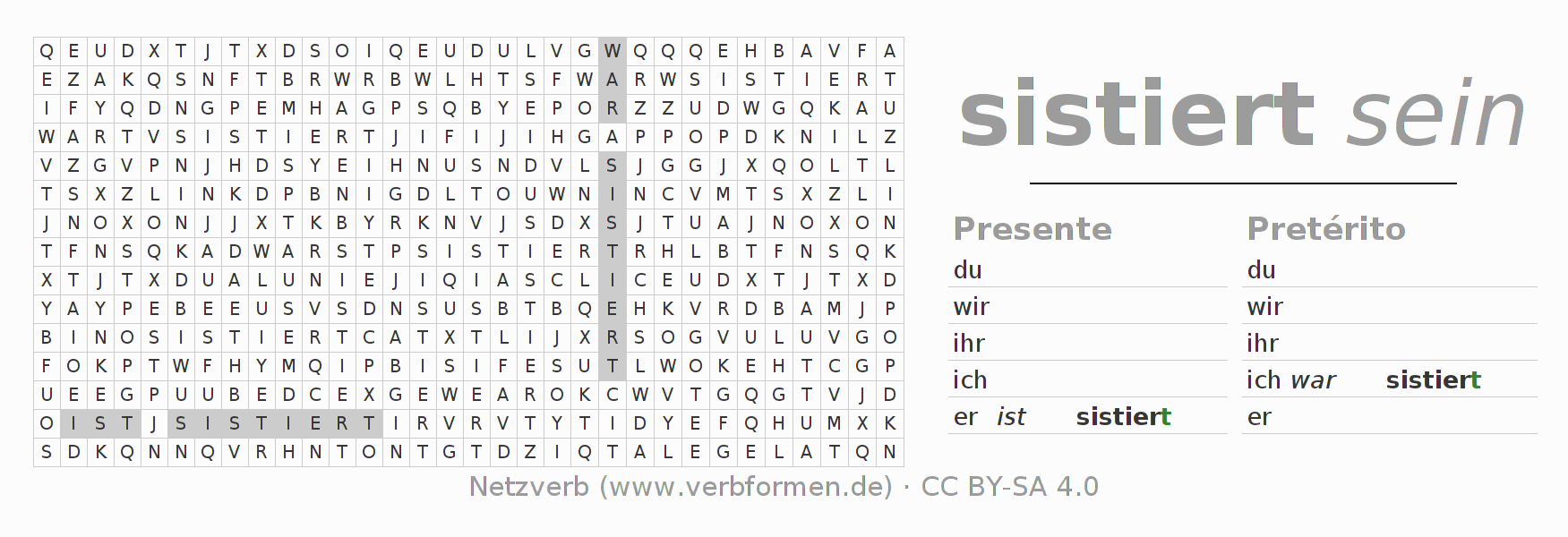 Caça-palavras para todas as formas do verbo sistieren