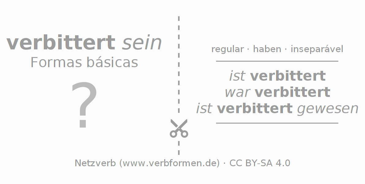 A Tabela de verbo resume todas as formas verbais do verbo verbittern em uma só tabela.