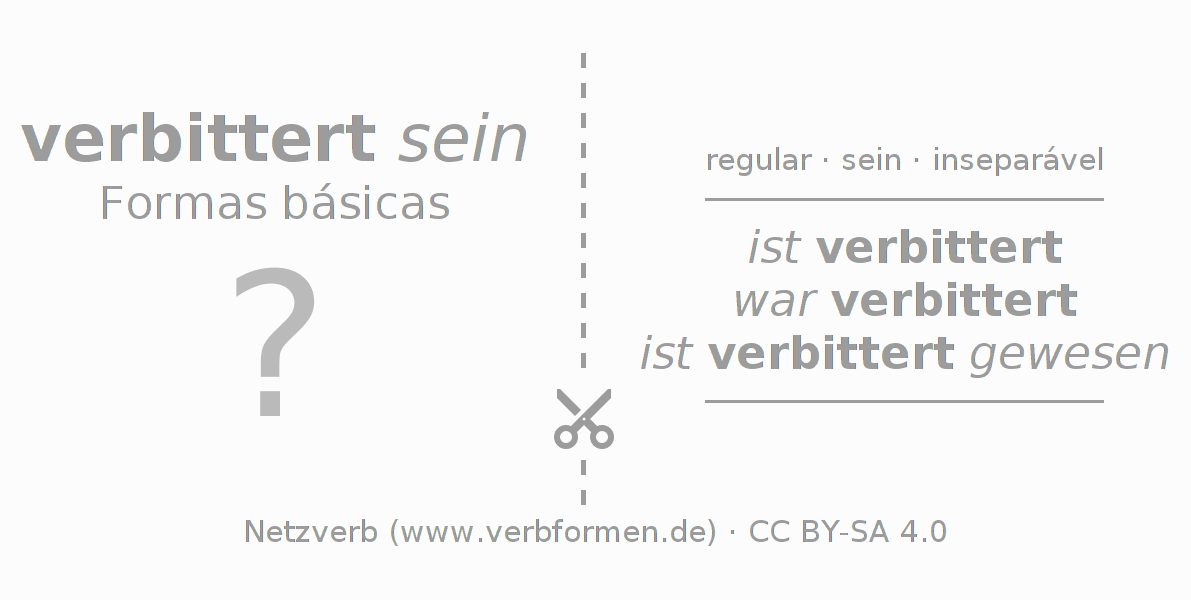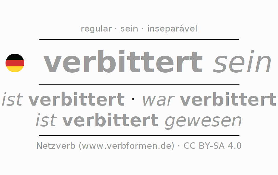 A Tabela de verbo resume todas as formas verbais do verbo verbittern em uma só tabela.