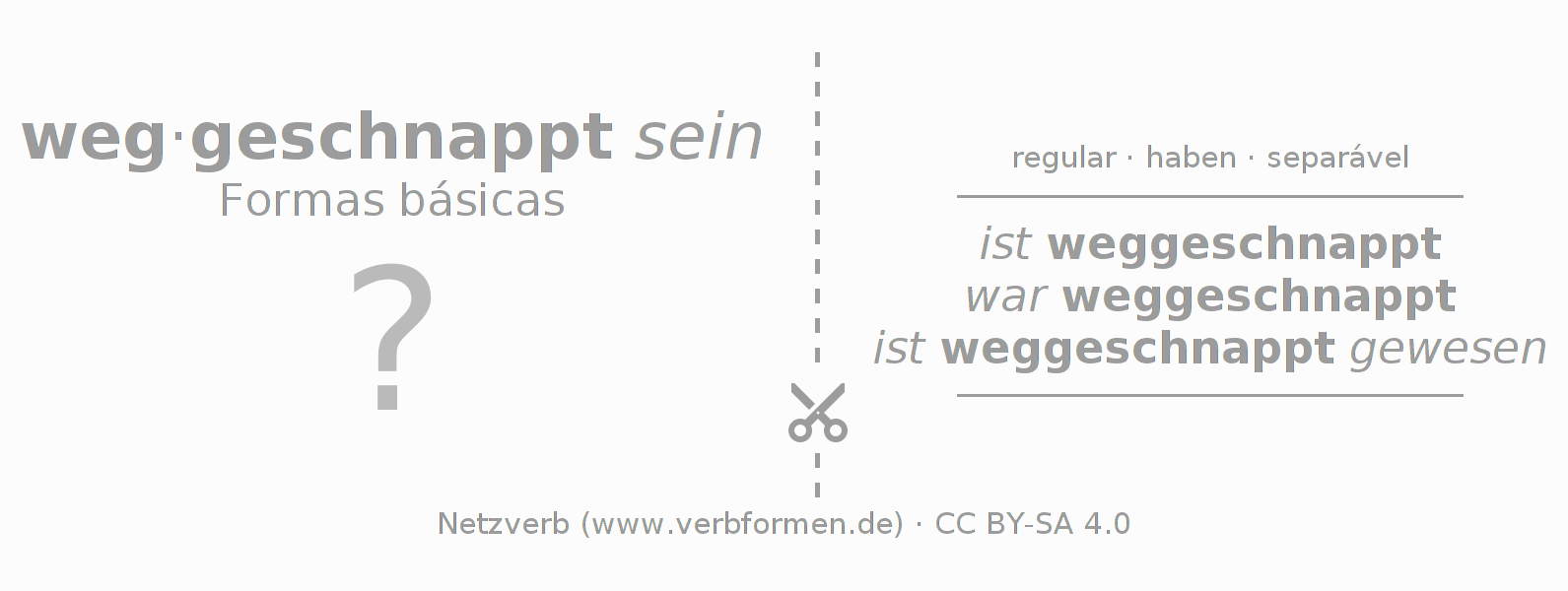 A Tabela de verbo resume todas as formas verbais do verbo wegschnappen em uma só tabela.