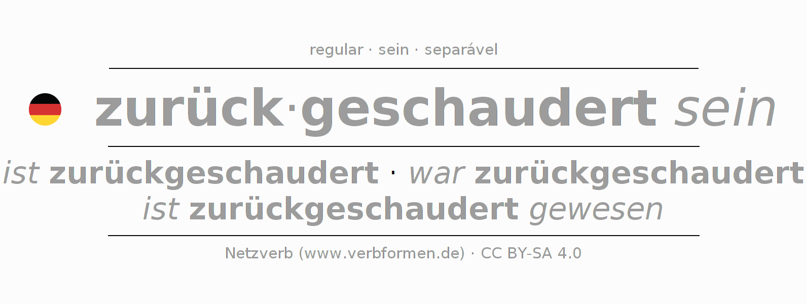 A Tabela de verbo resume todas as formas verbais do verbo zurückschaudern em uma só tabela.