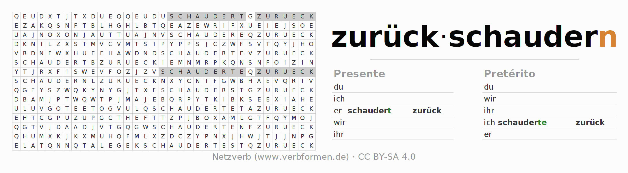 Caça-palavras para todas as formas do verbo zurückschaudern