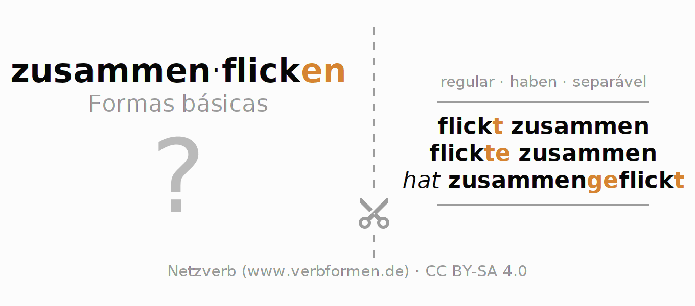 A Tabela de verbo resume todas as formas verbais do verbo zusammenflicken em uma só tabela.