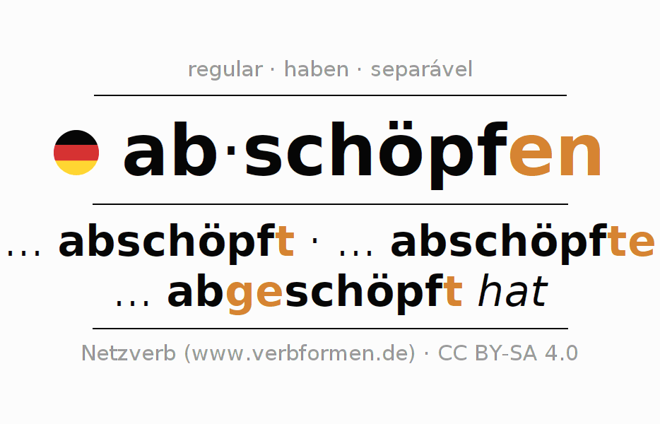 Conjugação simples no presente, pretérito, imperativo e conjuntivo do verbo abschöpfen