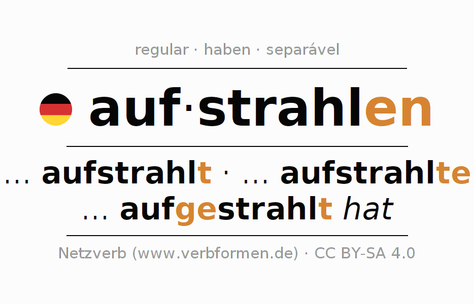 Conjugação simples no presente, pretérito, imperativo e conjuntivo do verbo aufstrahlen