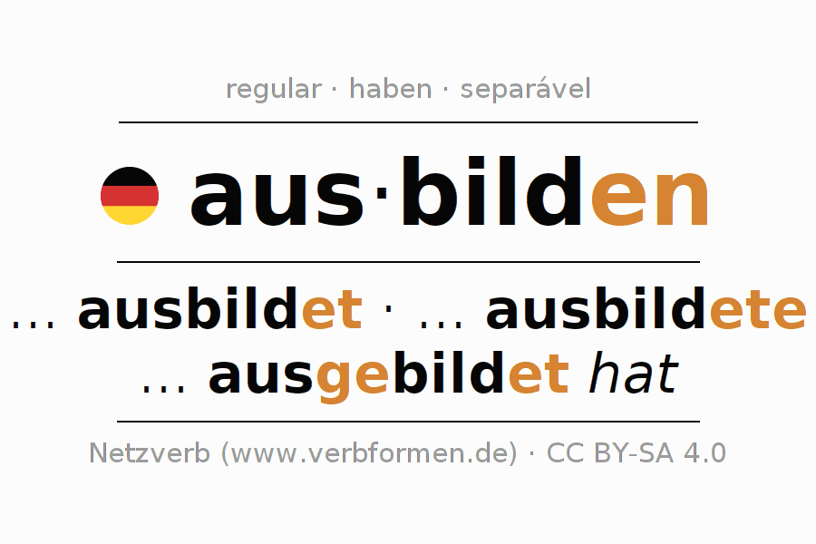 A conjugação do verbo ausbilden (formar, treinar) é regular. As formas mais comuns são ... ausbildet, ... ausbildete e ... ausgebildet hat. O verbo auxilar para ausbilden é "haben".