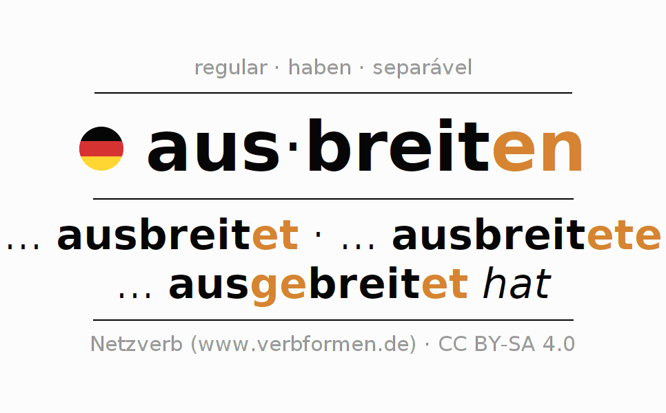 Conjugação simples no presente, pretérito, imperativo e conjuntivo do verbo ausbreiten