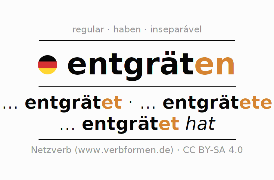 A conjugação do verbo entgräten (desespinar, desossar) é regular. As formas mais comuns são ... entgrätet, ... entgrätete e ... entgrätet hat. O verbo auxilar para entgräten é "haben".