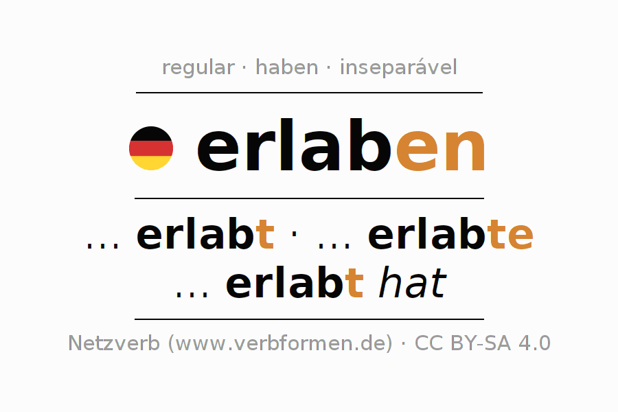 O prefixo er- de erlaben é inseparável. A flexão ocorre em Ativo e é usada como Oração subordinada. Para melhor compreensão estão disponíveis incontáveis. Exemplos do verbo erlaben . Para a prática e consolidação do estudo