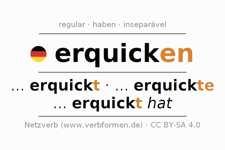 Conjugação simples no presente, pretérito, imperativo e conjuntivo do verbo erquicken